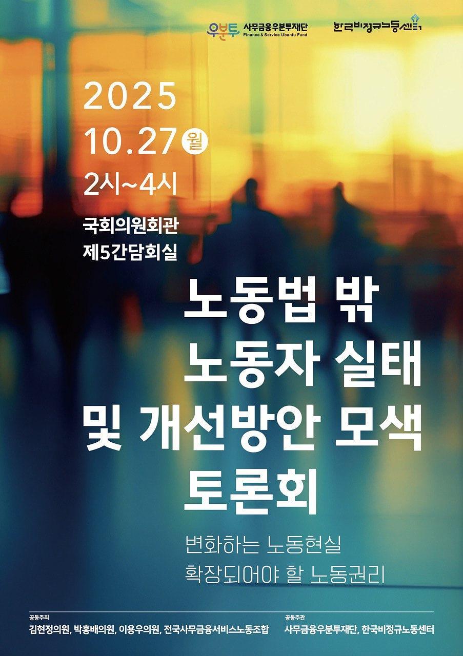 【공동주최】김현정의원, 박홍배의원, 이용우의원, 전국사무금융서비스노동조합 【공동주관】사무금융우분투재단, 한국비정규노동센터