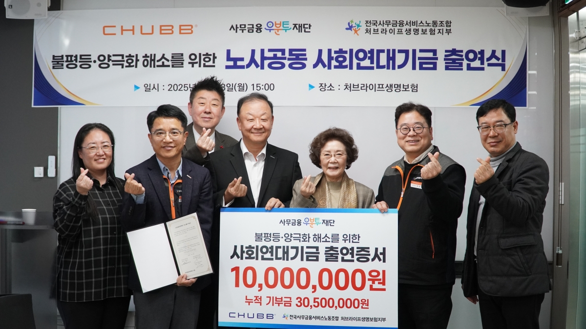 처브라이프생명보험 노사, 사무금융우분투재단에 1천만 원 기금출연...
