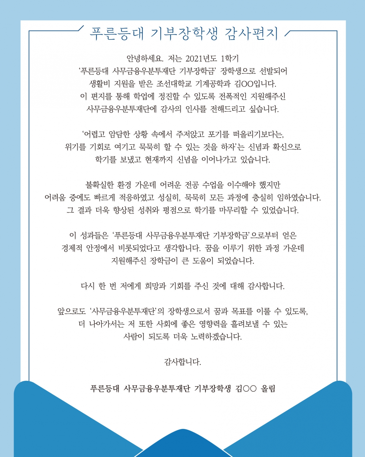 2021년 우분투장학생이 보내온 감사편지