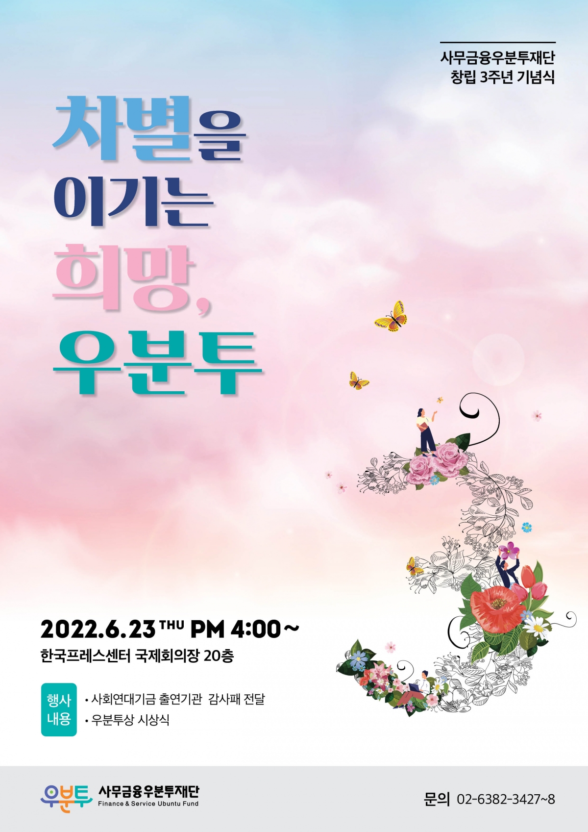 □ 제3회 우분투상 시상식은 6월 23일 오후 4시부터 한국프레스센터 20층 국제회의장에서 진행되는 사무금융우분투재단 창립3주년 기념식에서 열린다.