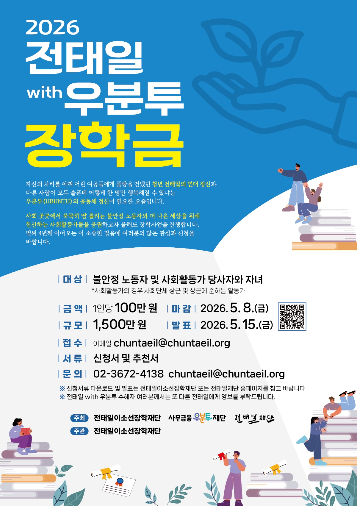 2026년에도 노동과 연대의 가치를 되새기는 장학사업이 이어진다. 전태일의 정신과 ‘우분투(UBUNTU)’ 철학을 바탕으로 한 '2026 전태일 with 우분투 장학금'이 지원자를 모집한다.
