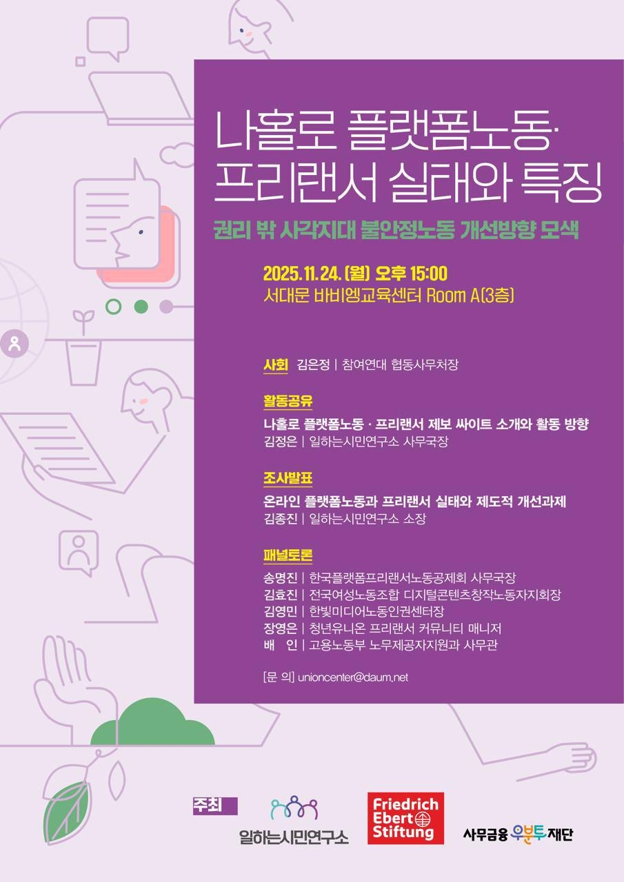 **주최 : 일하는시민연구소, 프리드리히에버트재단, 사무금융우분투재단