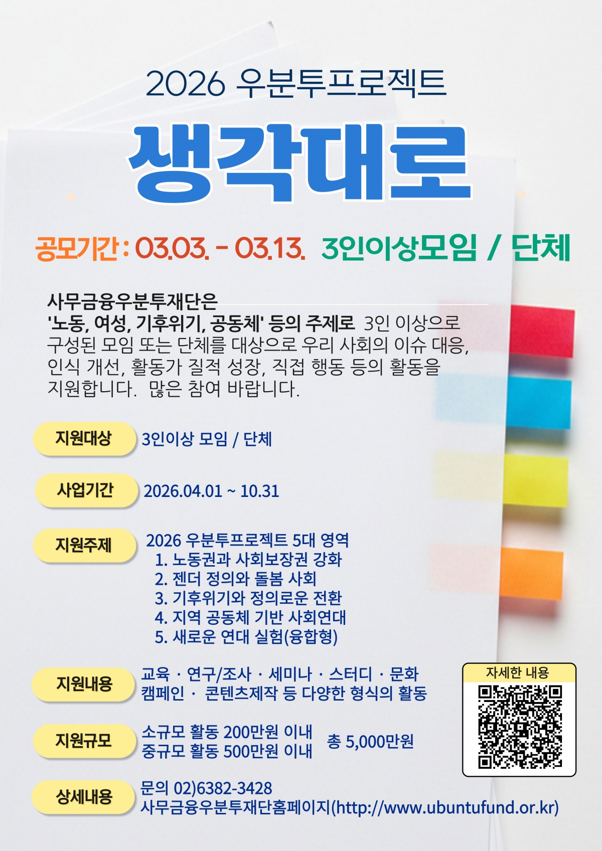 2026 참여형 우분투프로젝트 ‘생각대로’ 지원 사업 공모